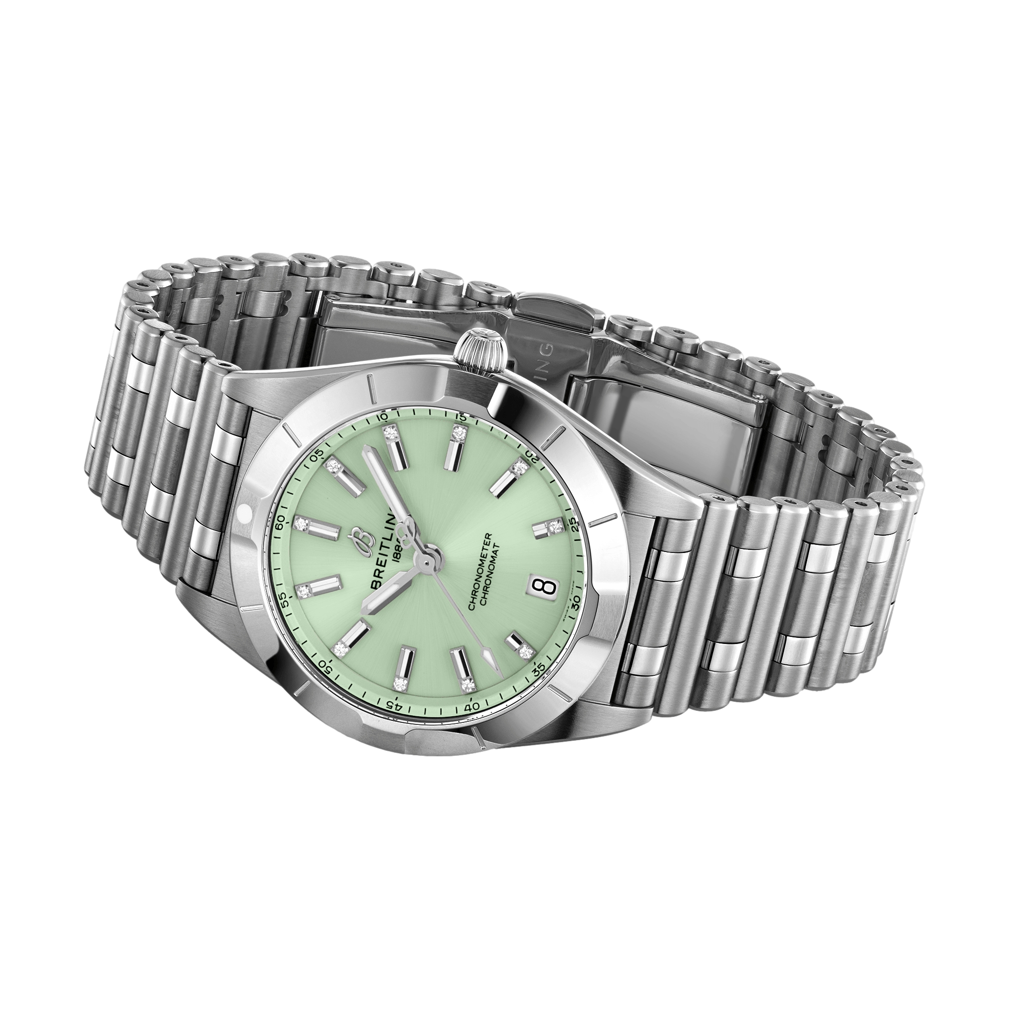 Breitling Chronomat 32mm Stainless Steel - Mint Green with Diamonds on Markers A77310101L1A1