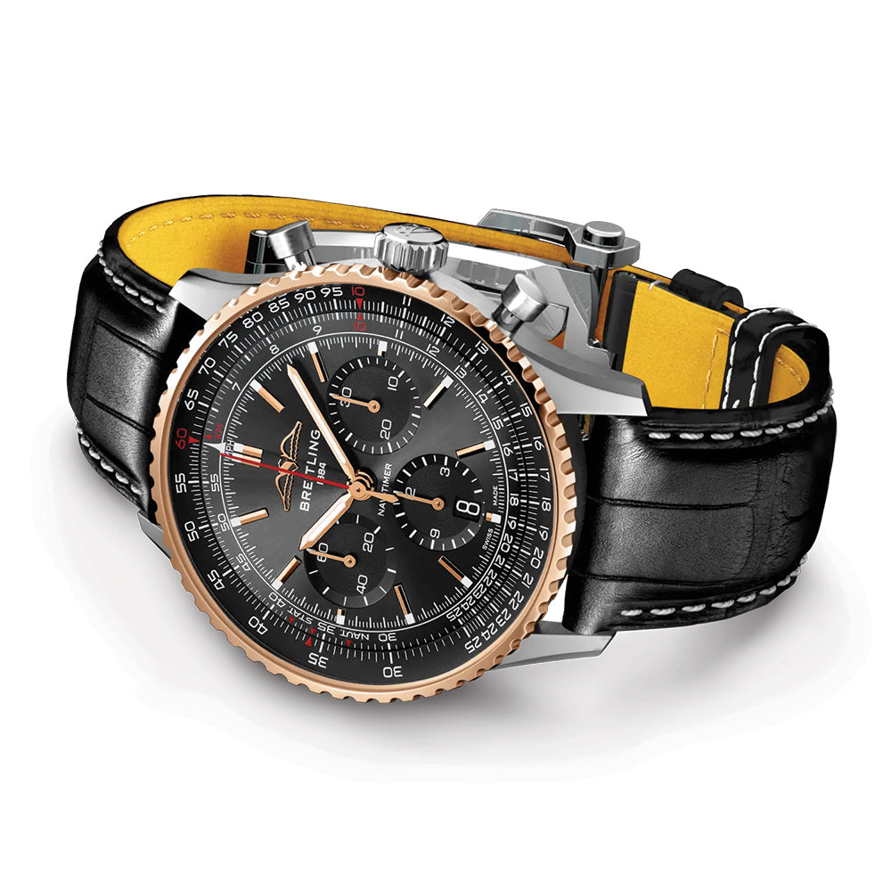 • Navitimer B01 Chronograph Limited Edition Steel and 18k Red Gold 43mm - Black on Leather Strap