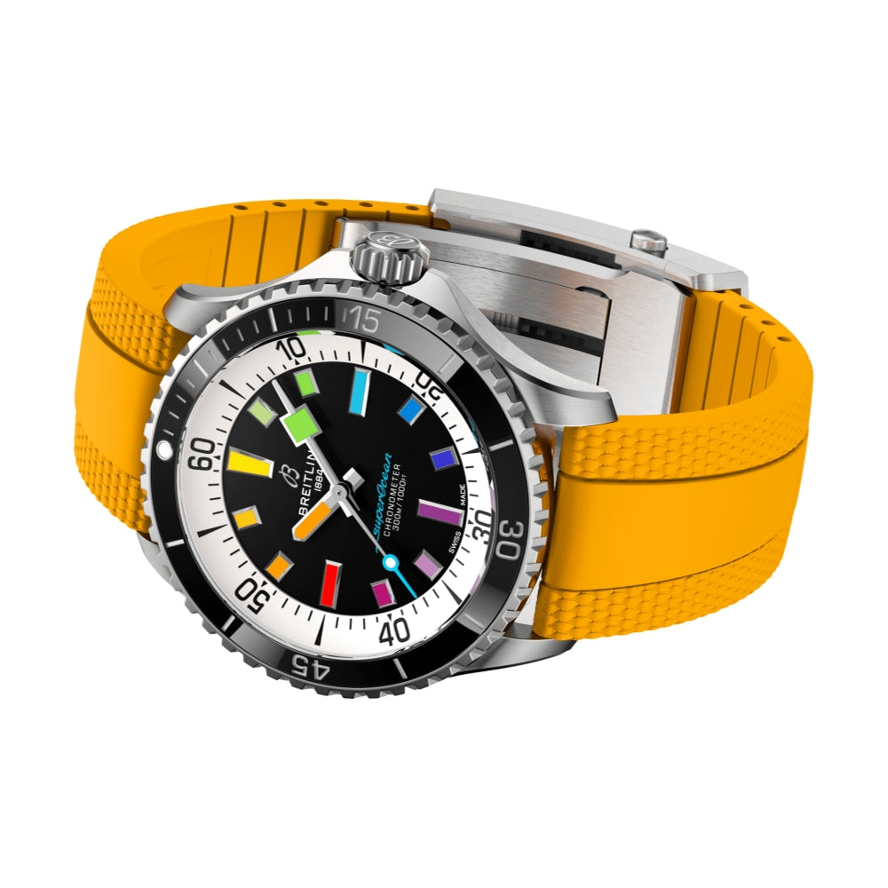 Breitling Superocean Automatic 42mm Rainbow on Yellow Rubber Strap A17375211B2S4