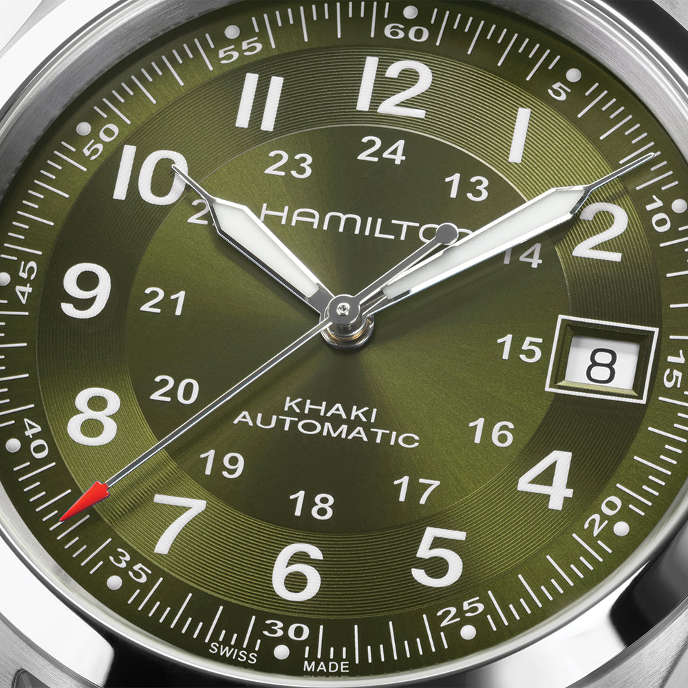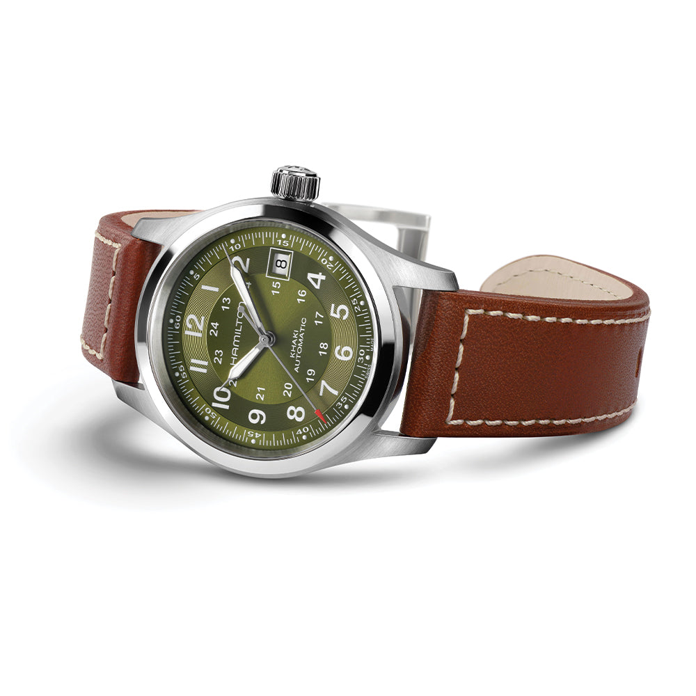 Khaki Field Auto Date 42mm - Green on Leather Strap