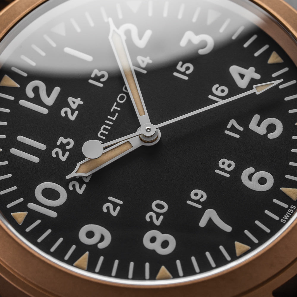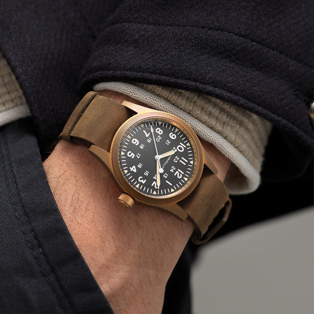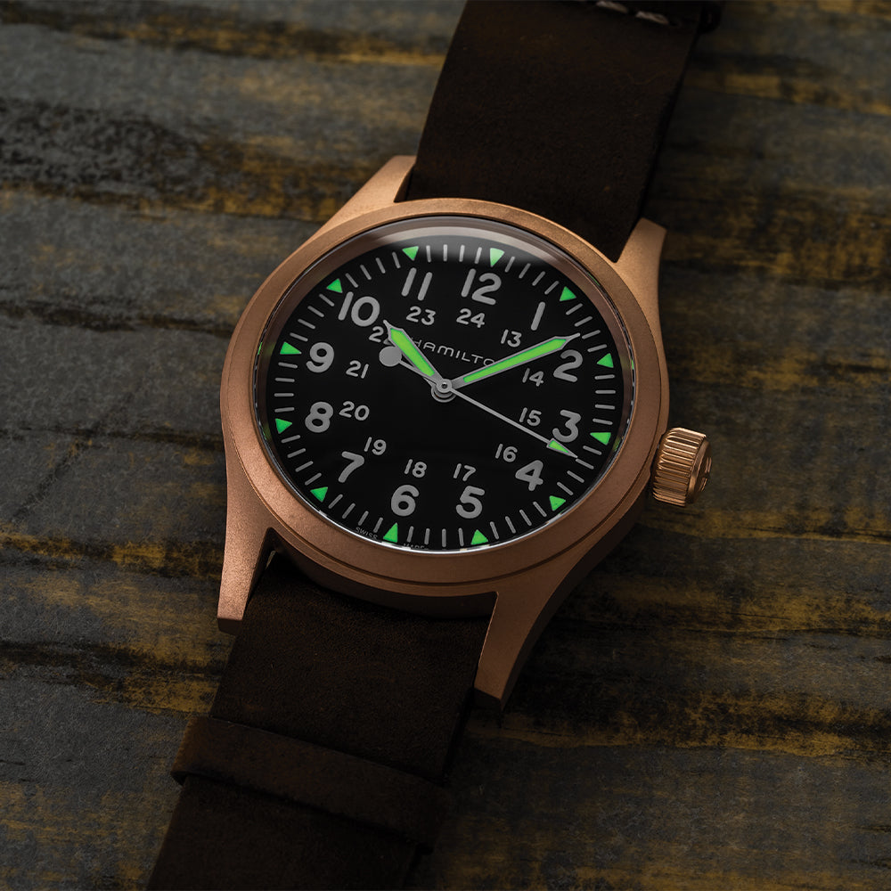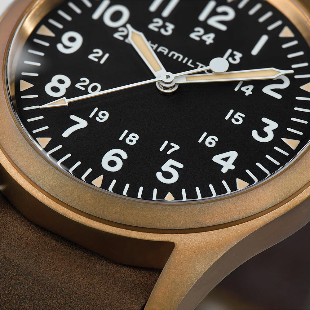 Khaki Field Mechanical Bronze 38mm - Black on One-Piece Leather Strap