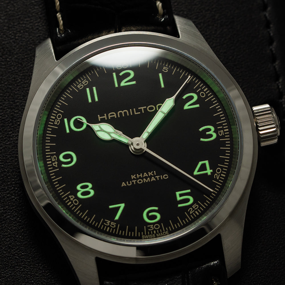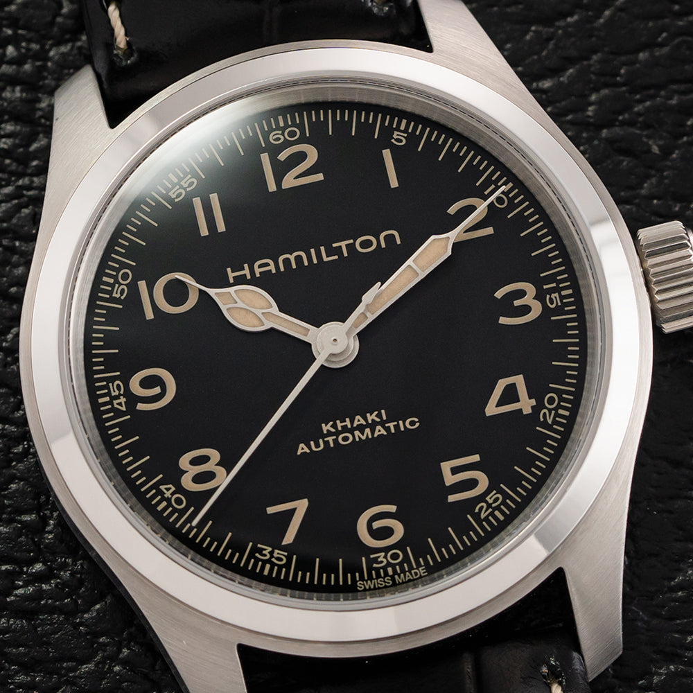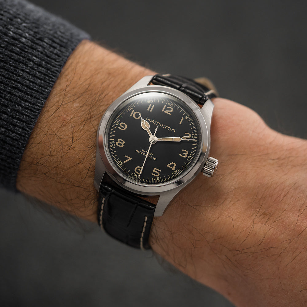 Khaki Field Murph 38mm - Black on Leather Strap