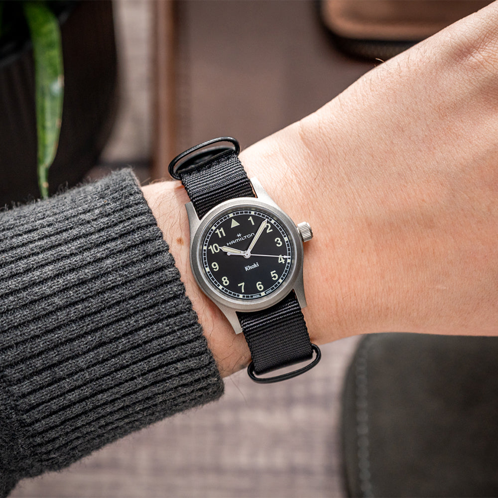 Khaki Field Quartz 33mm - Black on One-Piece Textile Strap