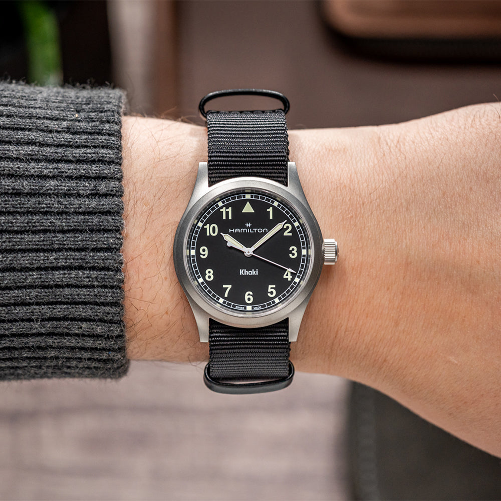 Khaki Field Quartz 38mm - Black on One-Piece Textile Strap