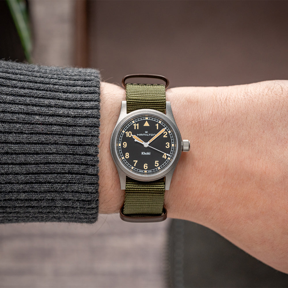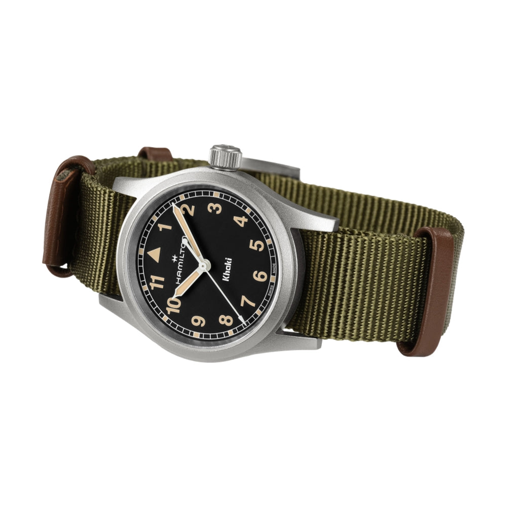 Khaki Field Quartz 33mm - Black on One-Piece Textile Strap