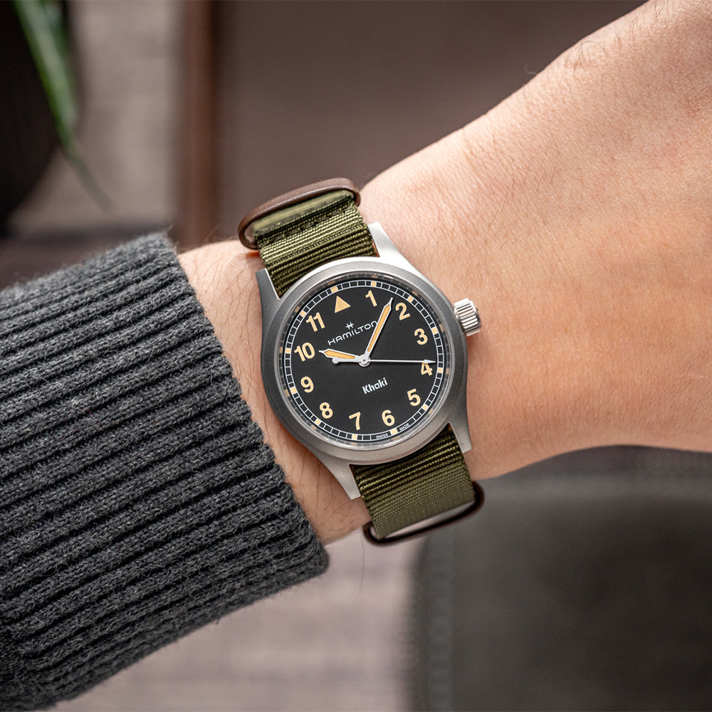 Khaki Field Quartz 38mm - Black on One-Piece Textile Strap