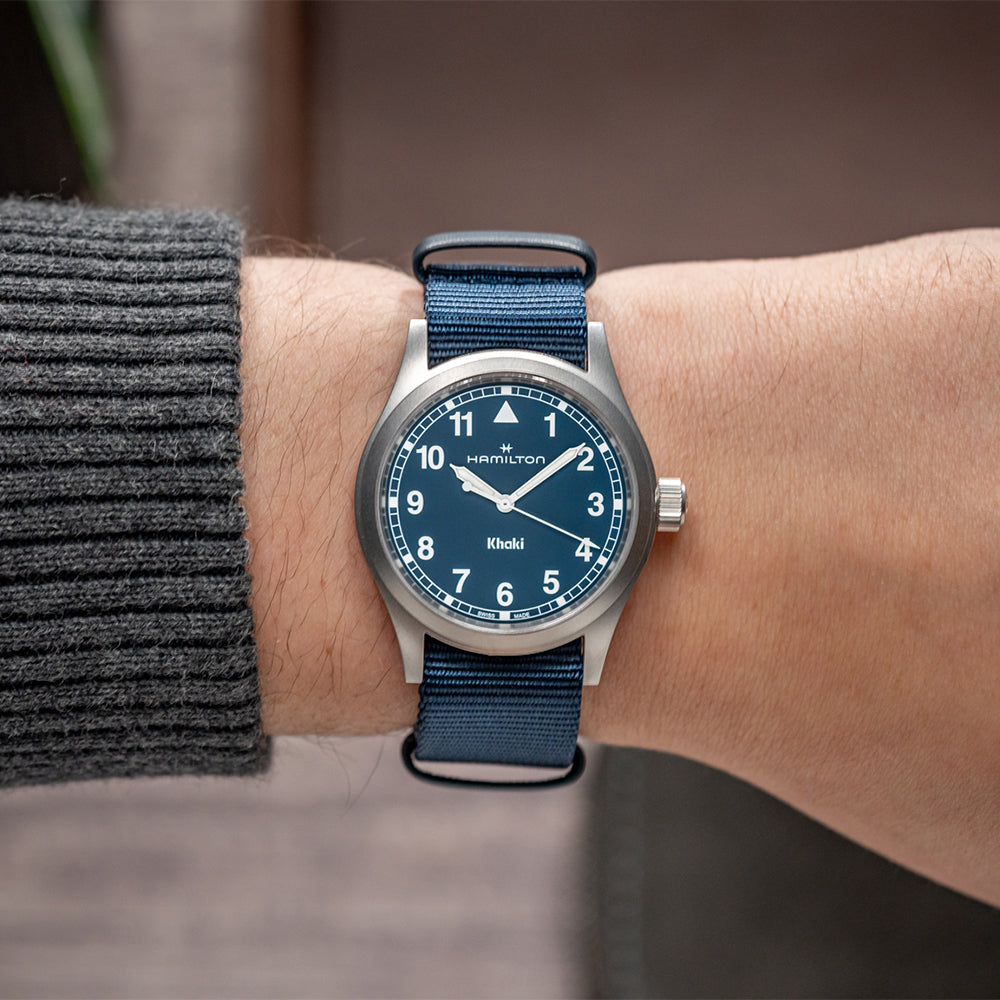 Khaki Field Quartz 38mm - Blue on One-Piece Textile Strap