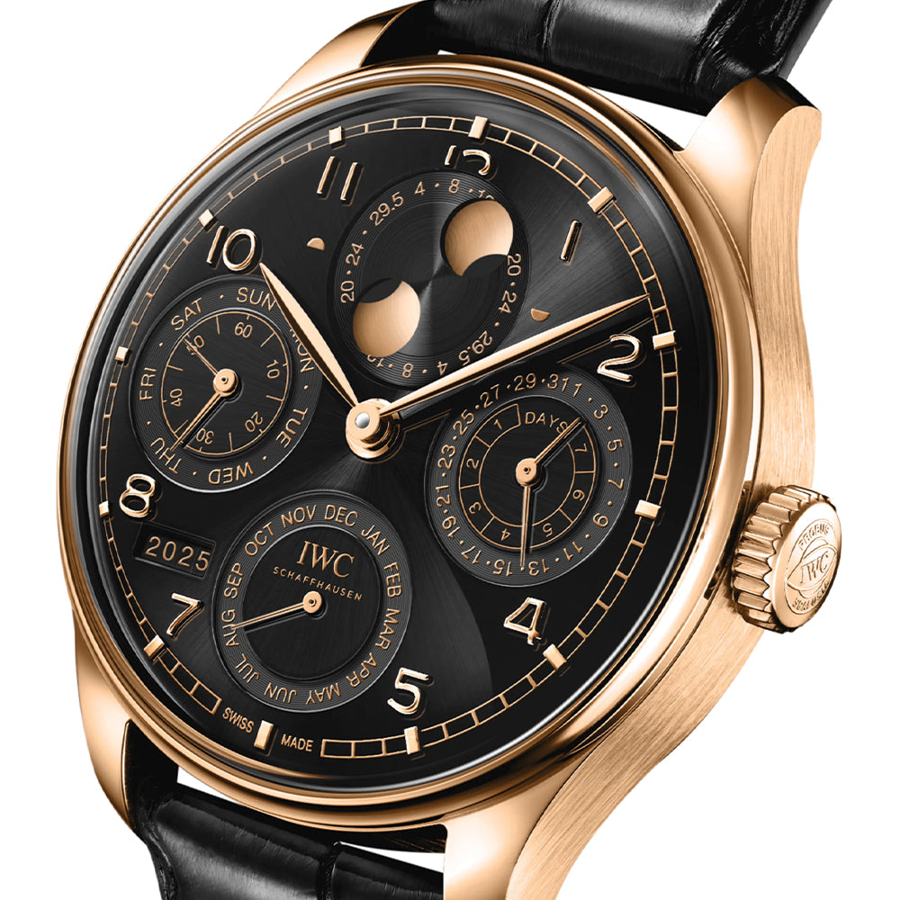 Portugieser Perpetual Calendar 18K Armor Gold庐 Case 44mm - Black on Leather Strap