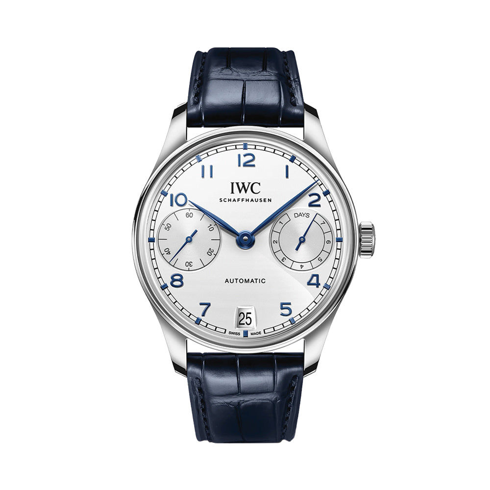 Portugieser Automatic Blue Accents 42mm - Silver-Plated on Blue Leather Strap