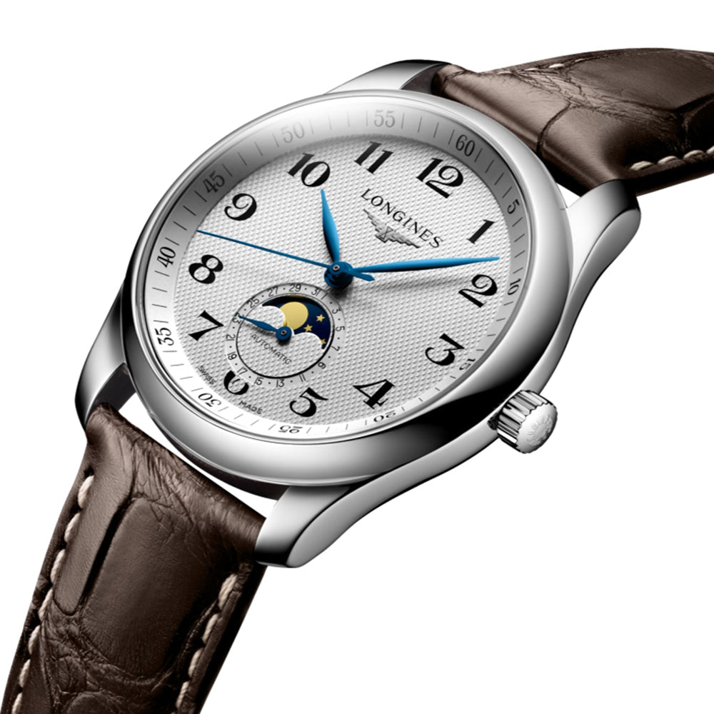 Master Moonphase 40mm - Silver "Barleycorn" on Leather Strap