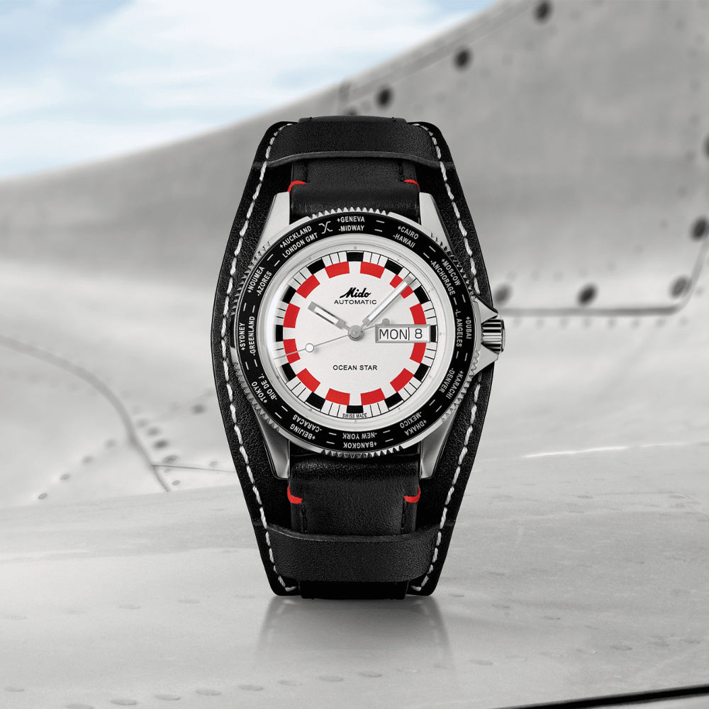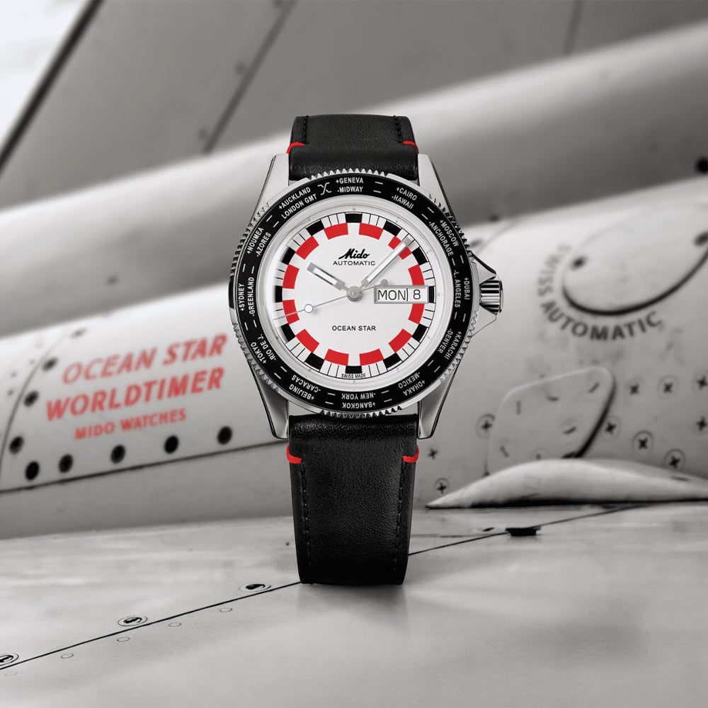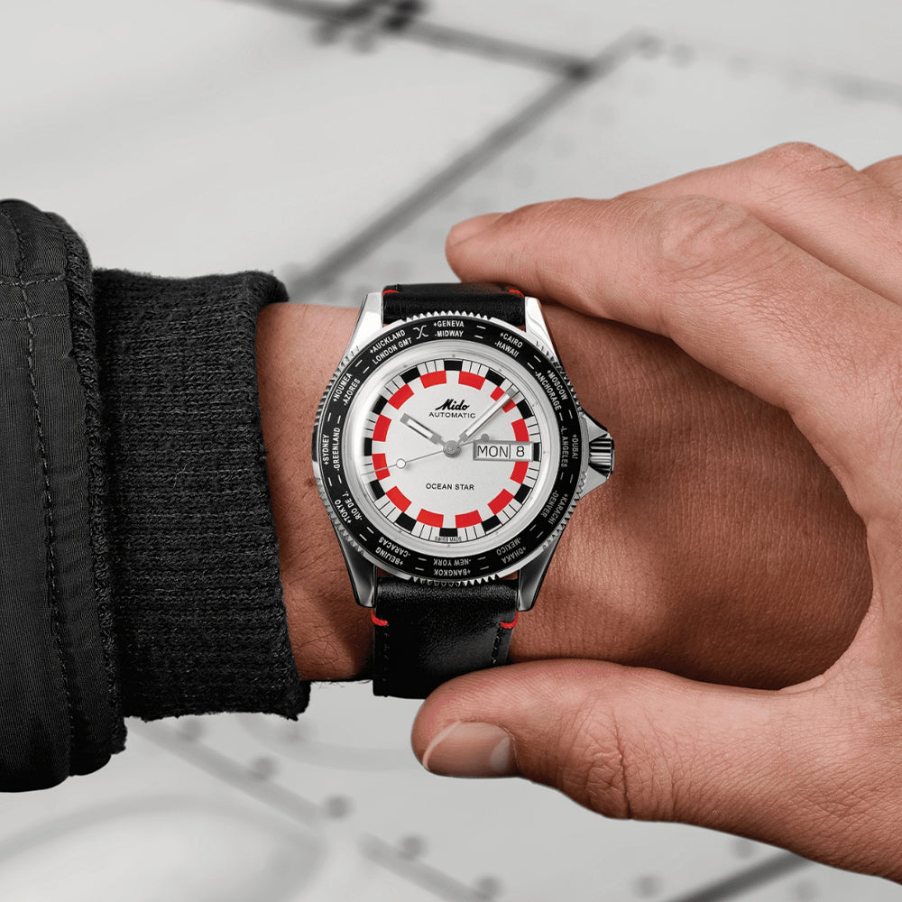 Ocean Star Worldtimer 40.5mm - Silver on Leather Strap