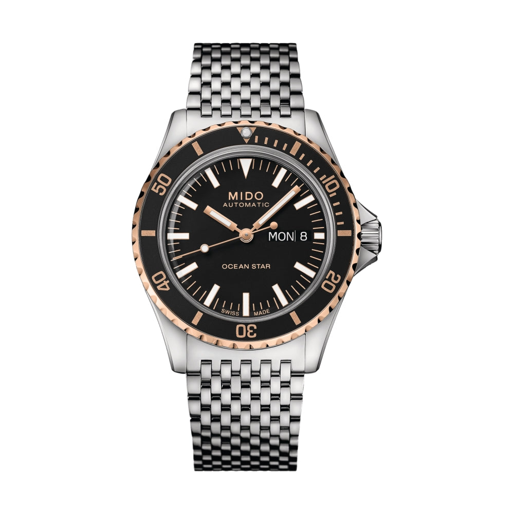 Ocean Star Tribute Black/Rose Gold-Tone Bezel 40.5mm - Black on Bracelet