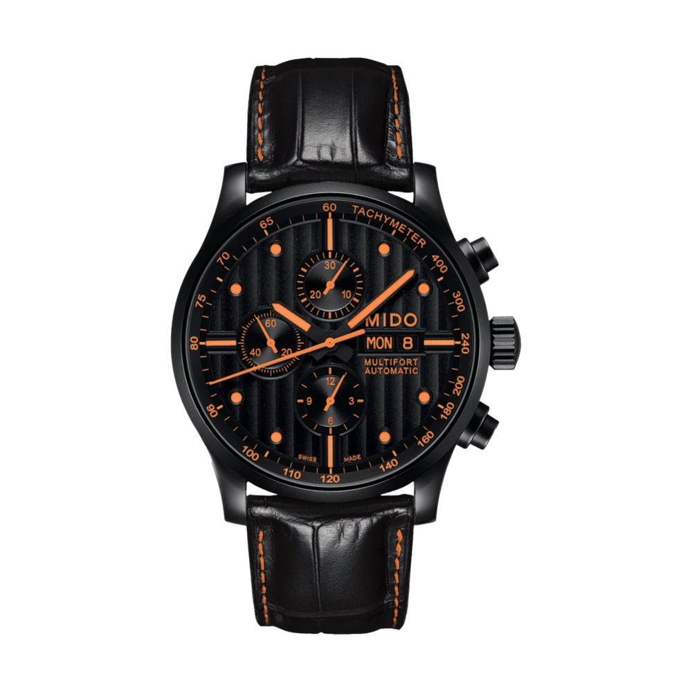 Multifort Chronograph Special Edition 44mm - Black and Orange on Leather Strap