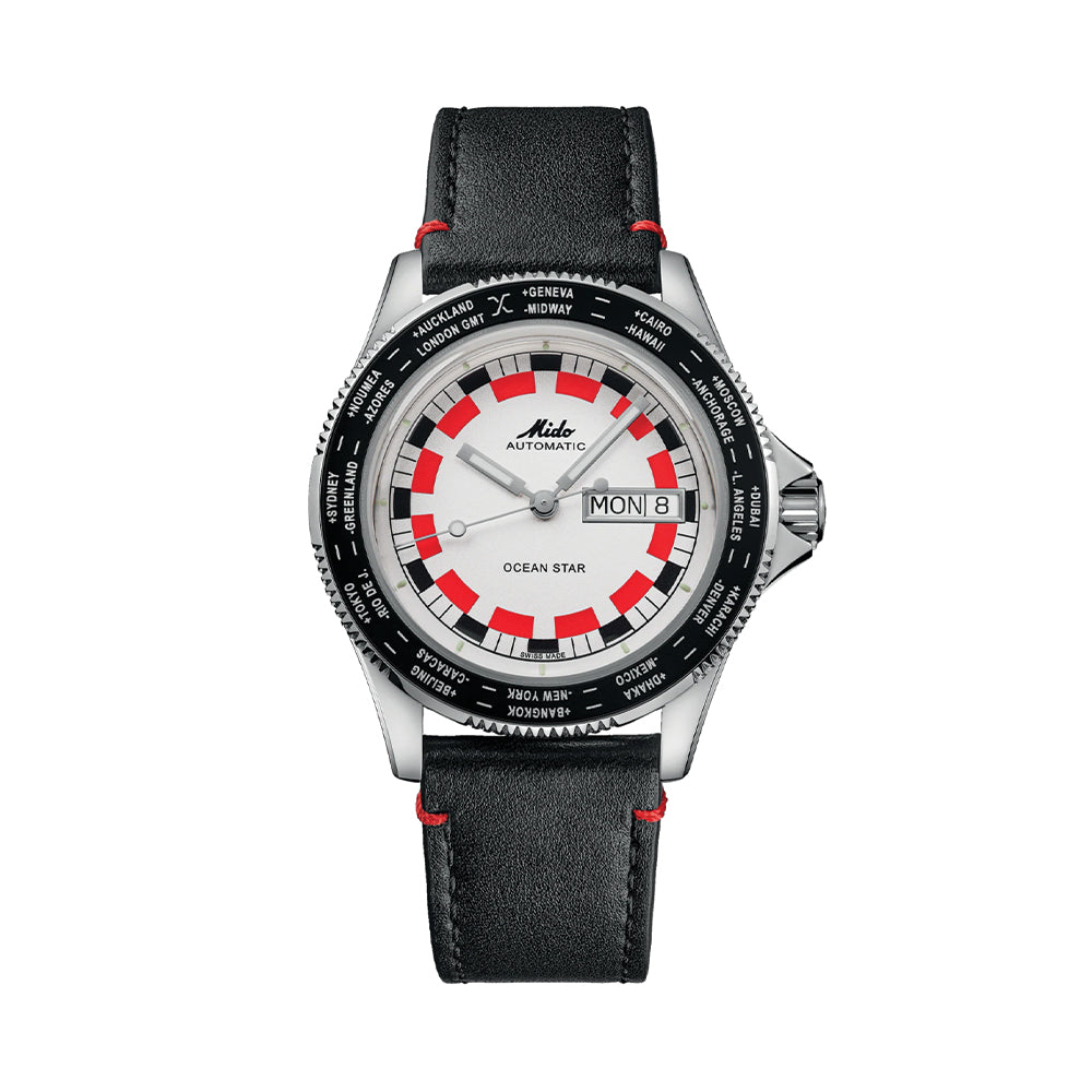 Ocean Star Worldtimer 40.5mm - Silver on Leather Strap