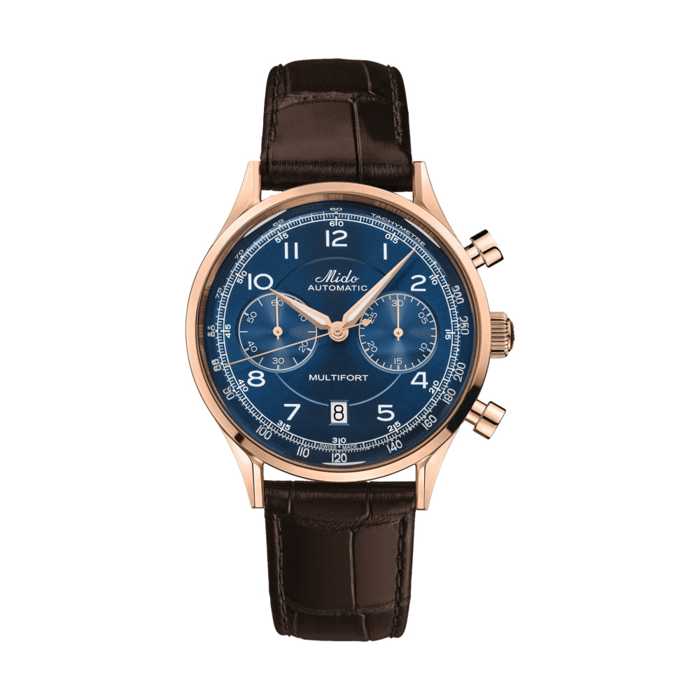 Multifort Patrimony Chronograph Rose Gold PVD 42mm - Blue on Leather Strap
