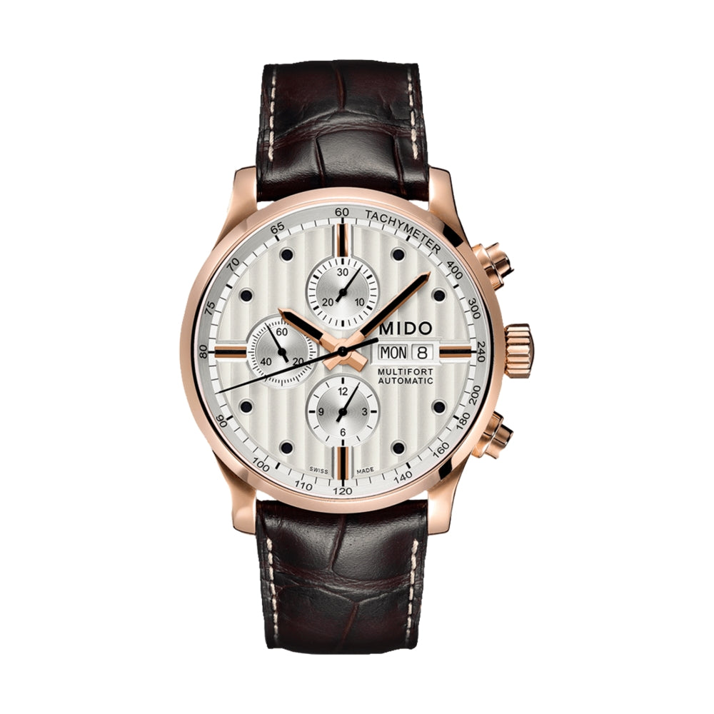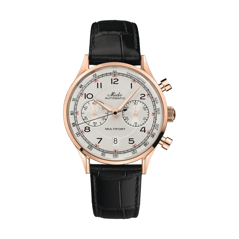 Multifort Chronograph Rose Gold PVD 35mm - Silver on Leather Strap