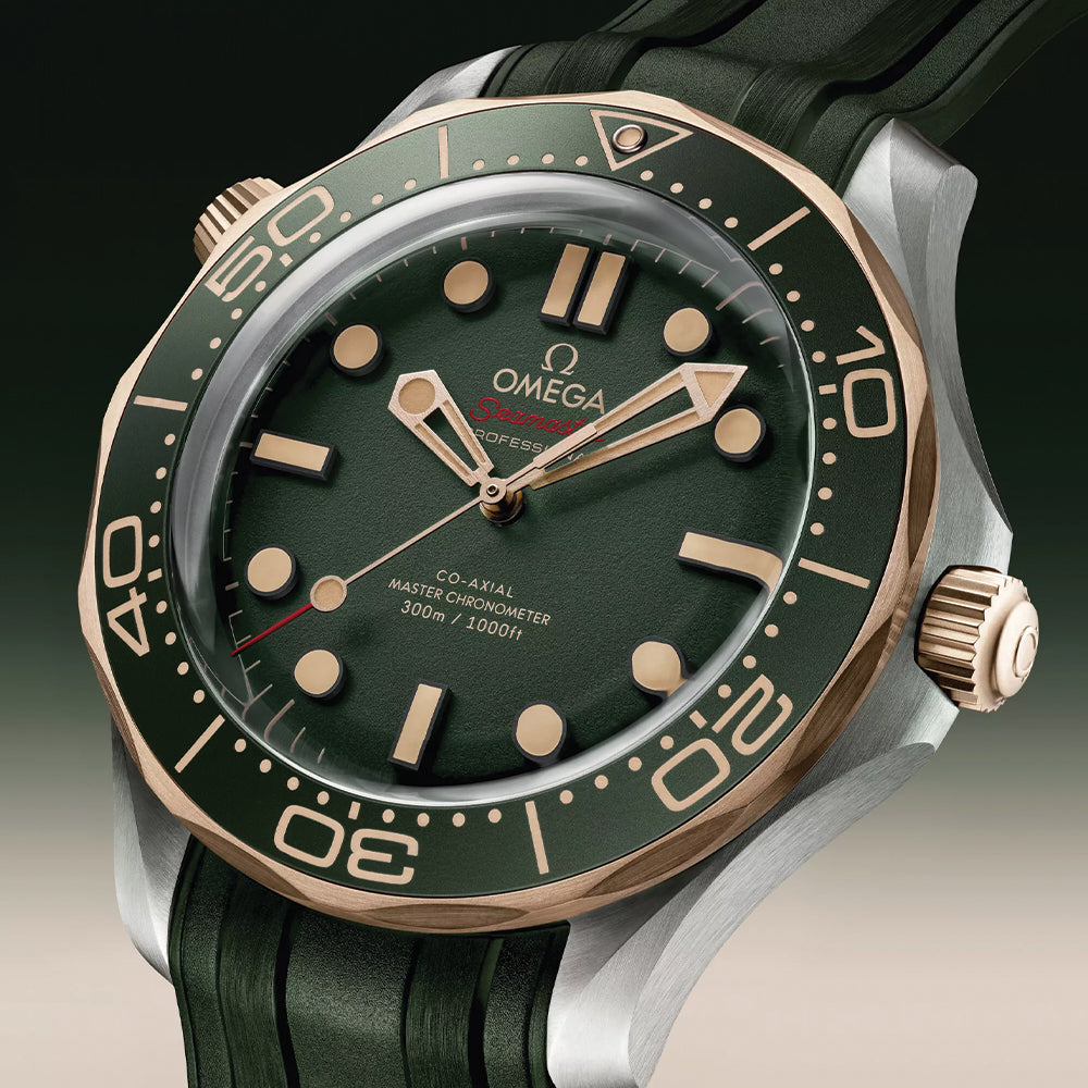 • Seamaster Diver 300M Titanium and Bronze Gold 42mm - Green on Rubber Strap