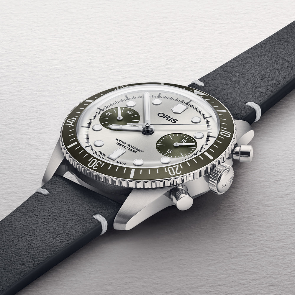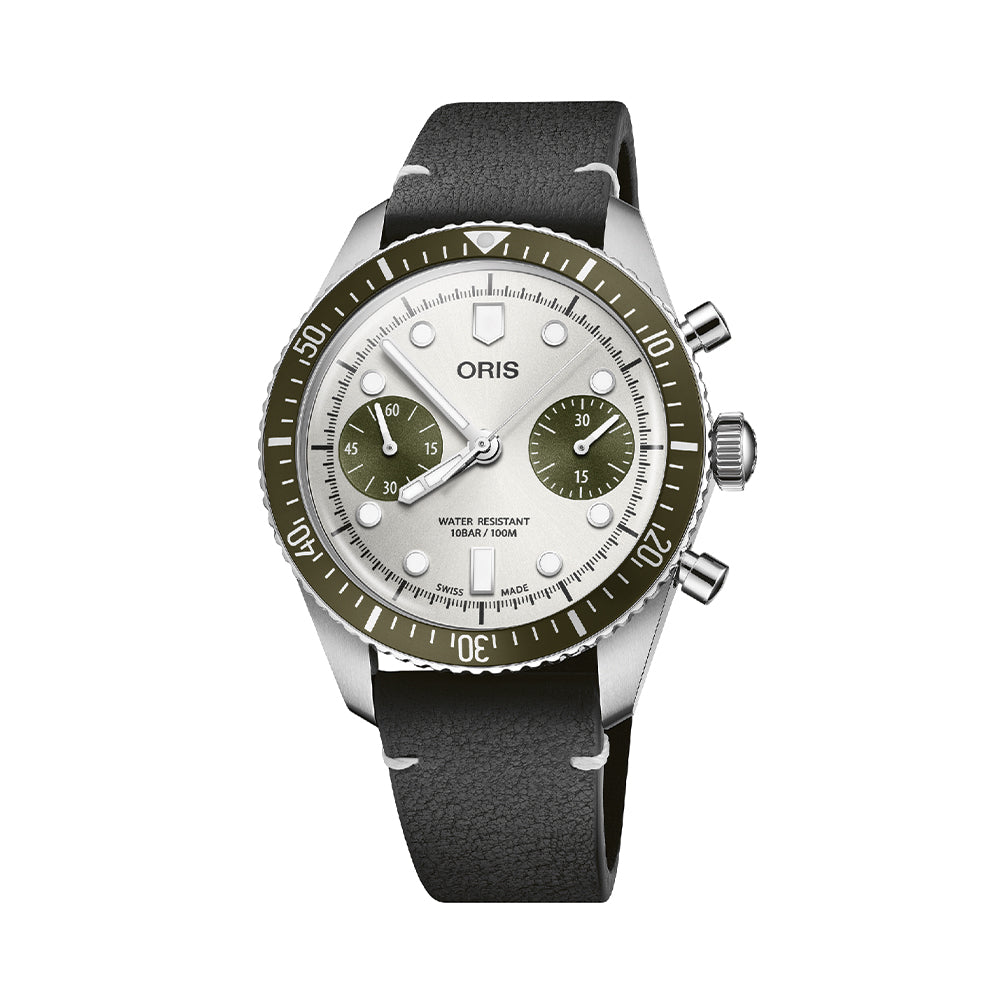 Divers Sixty-Five Chronograph 40mm - Silver on Leather Strap