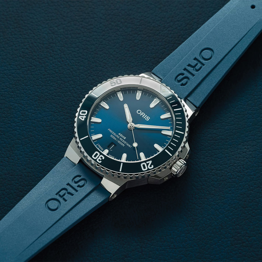 Aquis Date 41.5mm - Blue on Rubber Strap