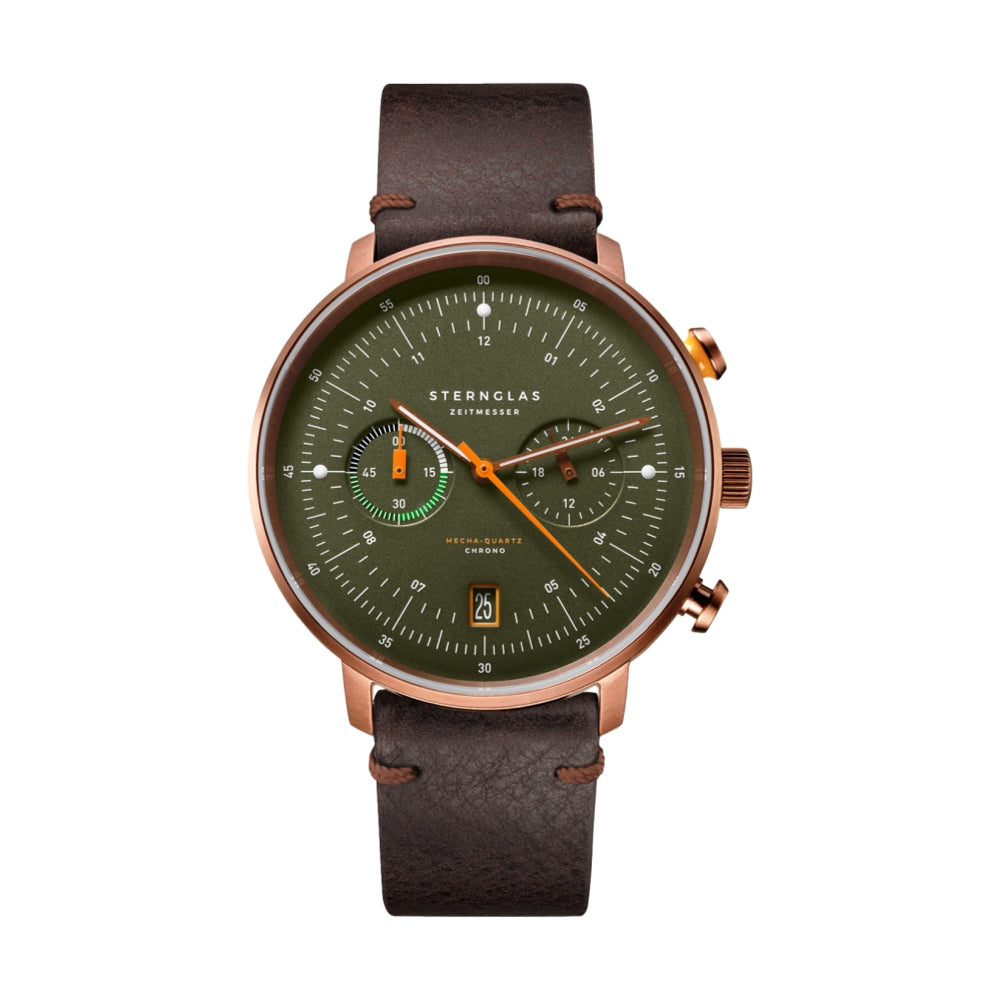 Hamburg Quartz Chronograph Dark Green Dial 42mm on Vintage Mocha Strap