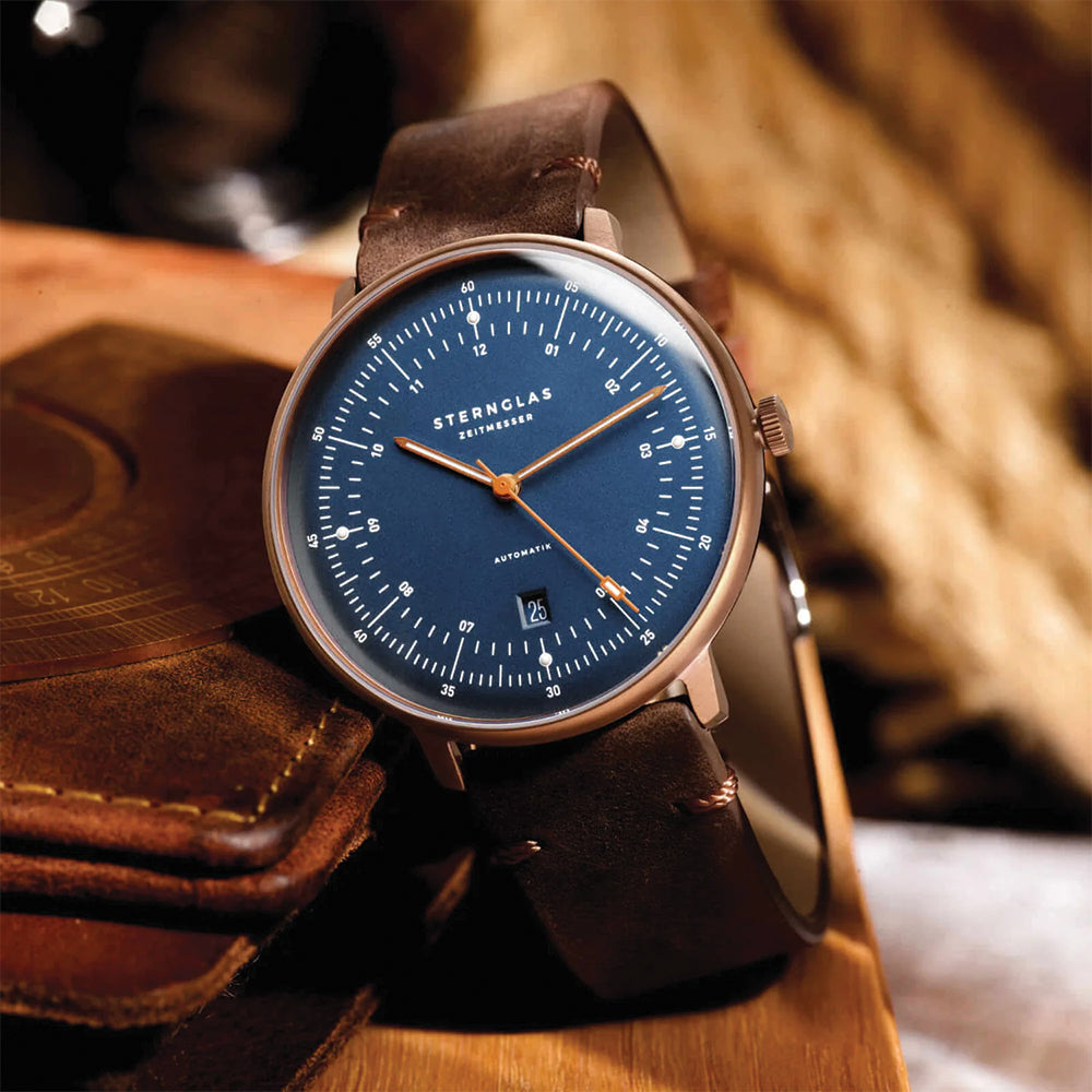 Hamburg Automatic Bronze PVD 42mm - Blue on Leather Strap