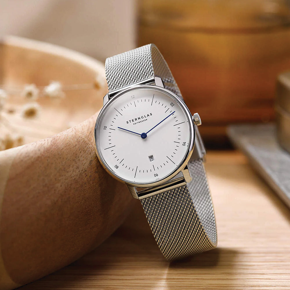 Naos Sunburst Blue Dial 38mm on Steel Milanaise Bracelet