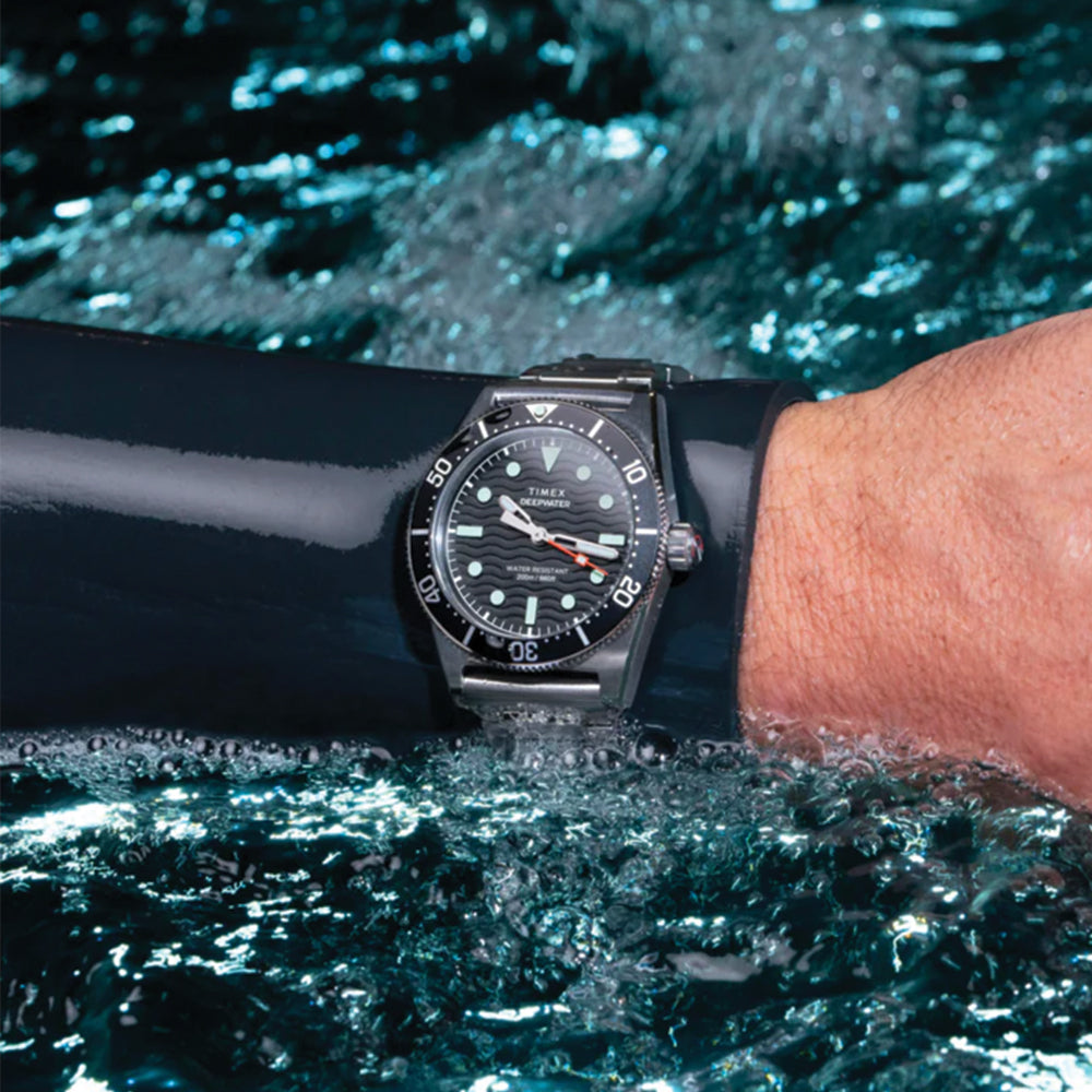 • Deepwater Reef 200 41mm - Black on Stainless Steel Bracelet