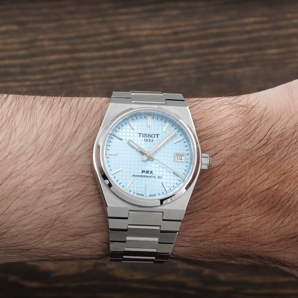PRX "Glacier" Automatic Powermatic 80 35mm - Ice Blue on Bracelet