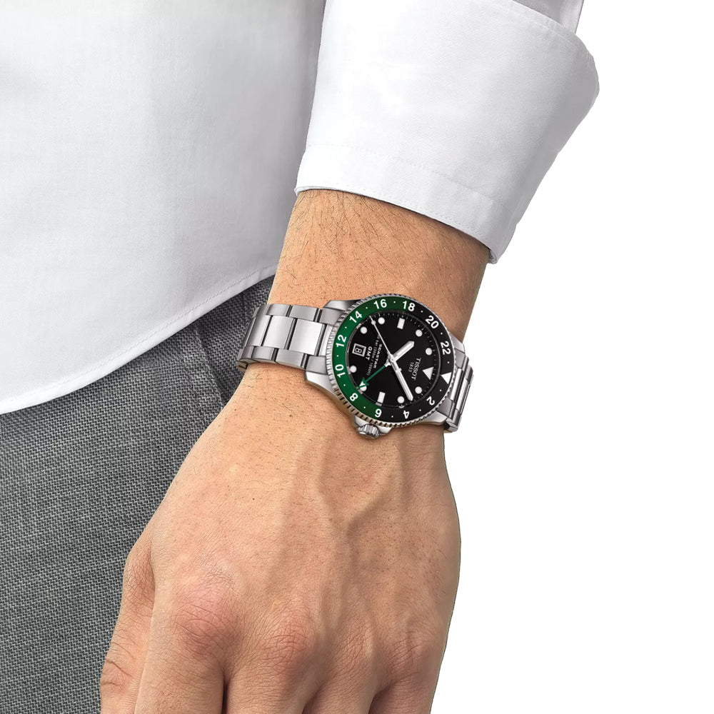 Seastar 1000 GMT Quartz 40mm - Black w/ Green/Black Bezel on Bracelet