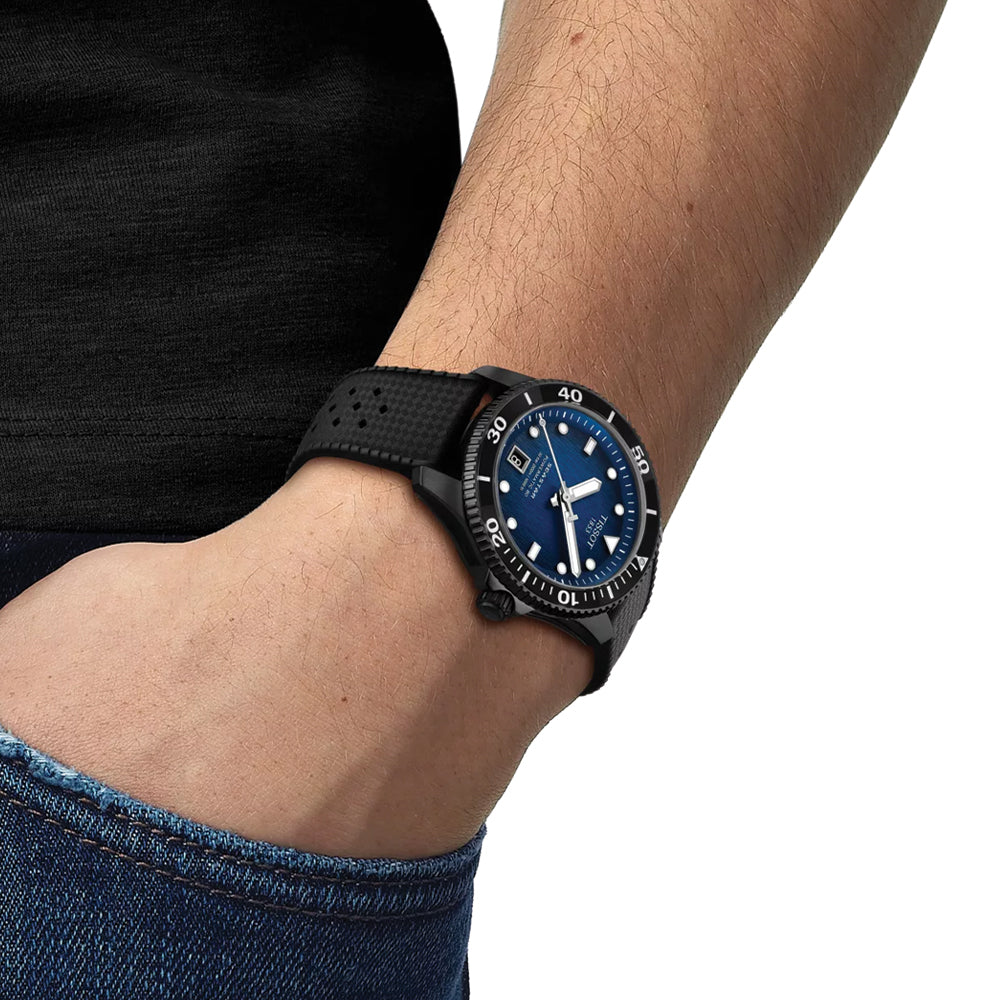 Seastar 1000 Powermatic 80 Black PVD 40mm - Blue on Rubber Strap