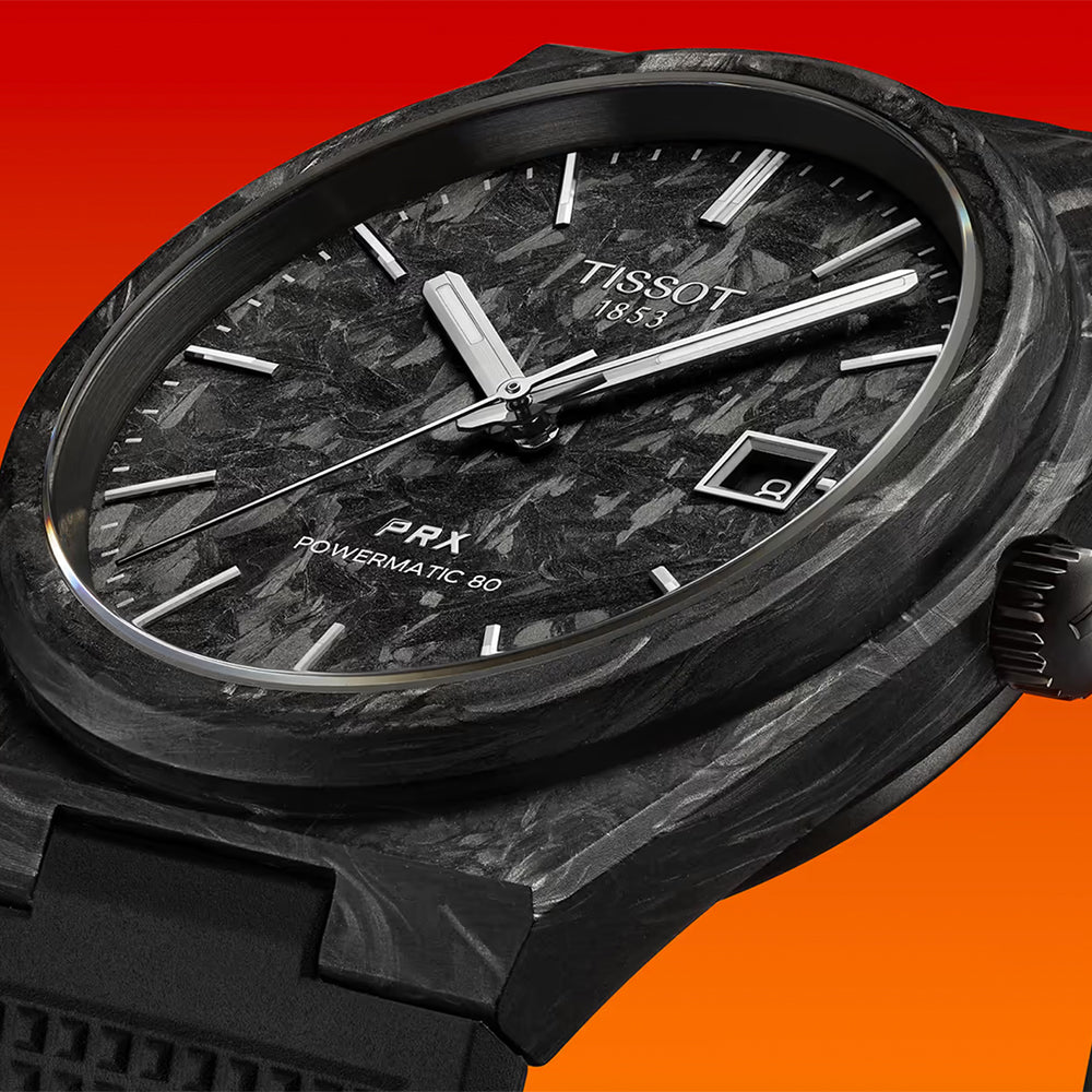 PRX Carbon Powermatic 80 40mm - Black on Rubber Strap