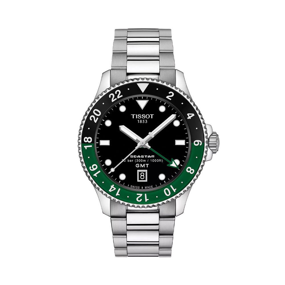 Seastar 1000 GMT Quartz 40mm - Black w/ Green/Black Bezel on Bracelet