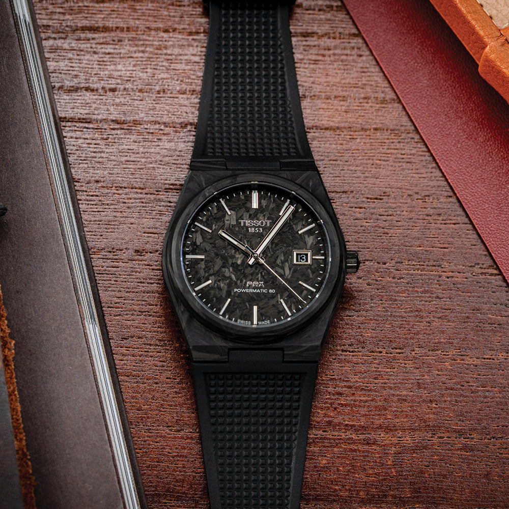 PRX Carbon Powermatic 80 40mm - Black on Rubber Strap