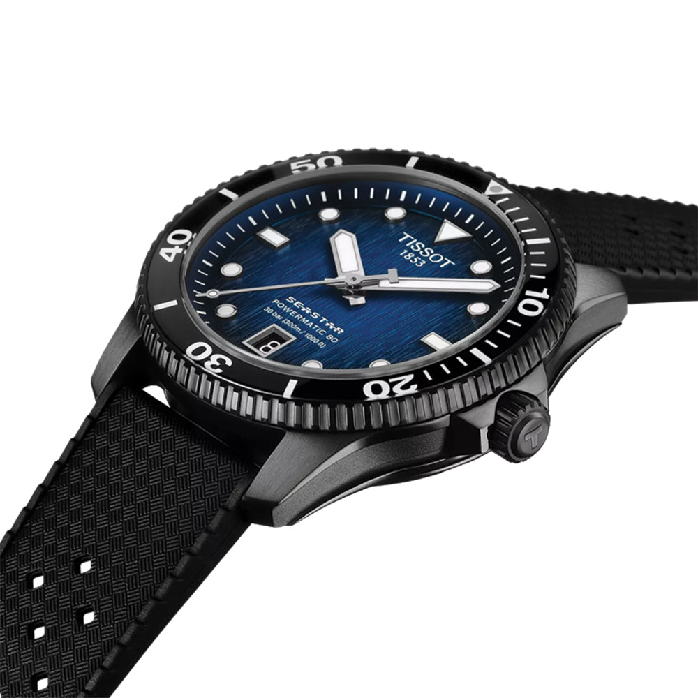 Seastar 1000 Powermatic 80 Black PVD 40mm - Blue on Rubber Strap