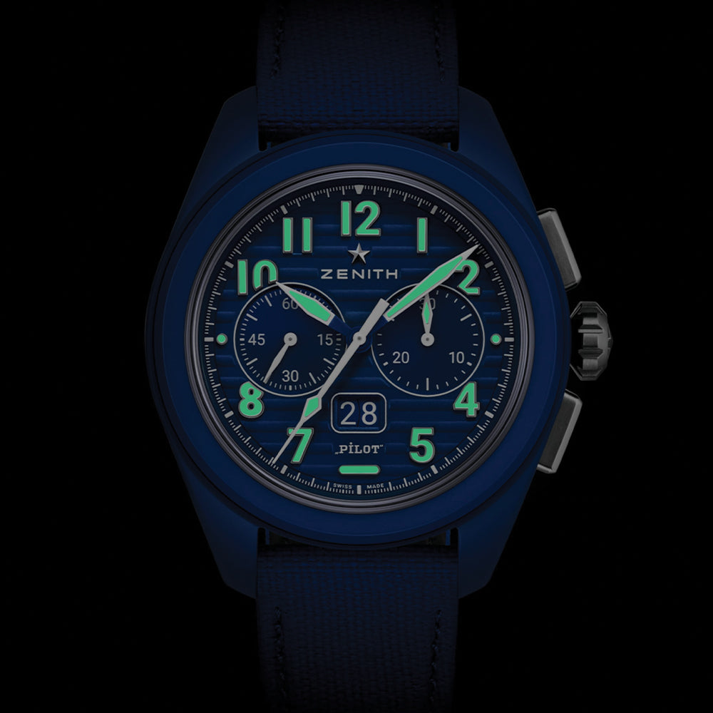 • Pilot Big Date Flyback 160th Anniversary Edition Ceramic 41mm - Blue on Rubber Strap w/ Extra Leather Strap