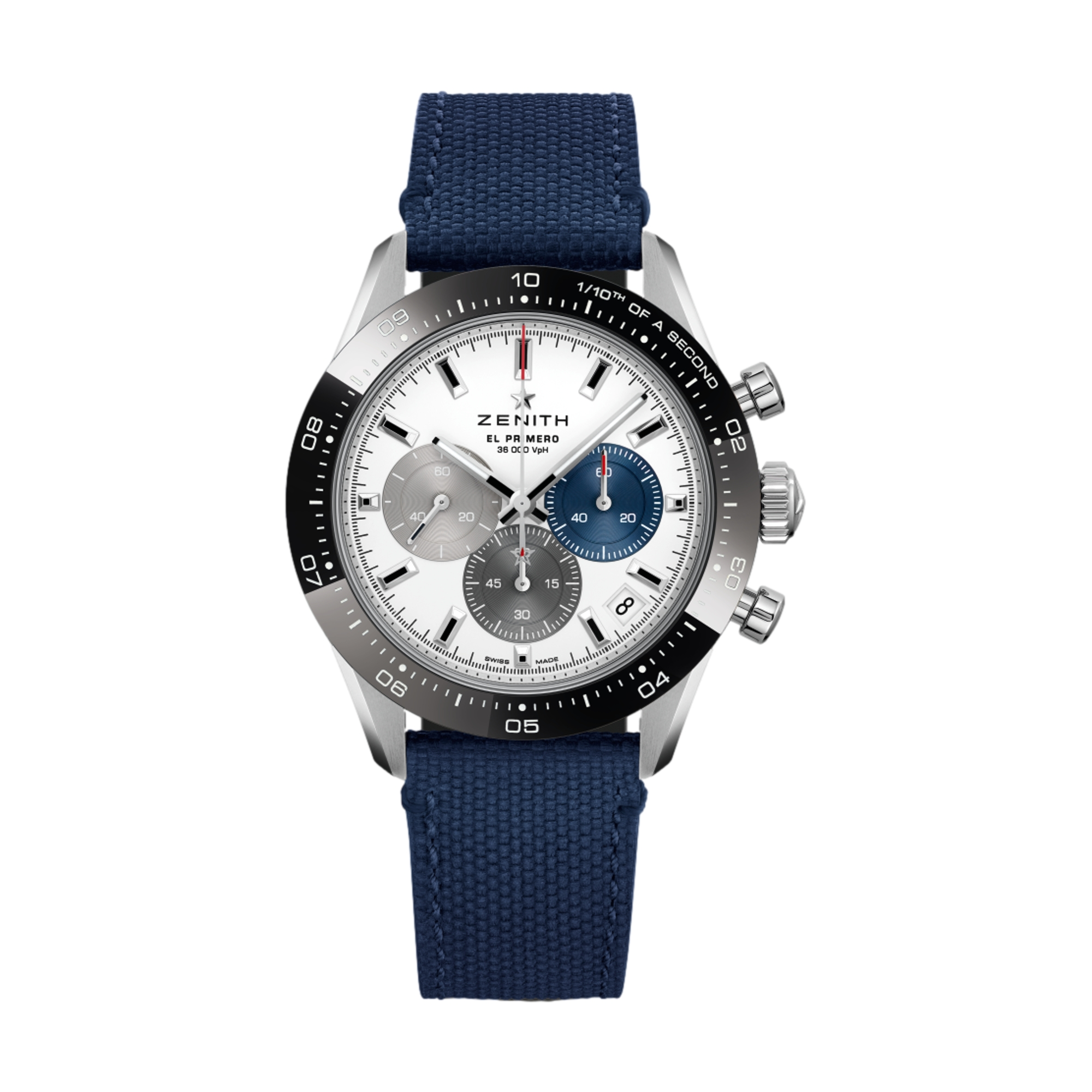 Chronomaster Open 39.5mm - White on Blue Fabric Strap
