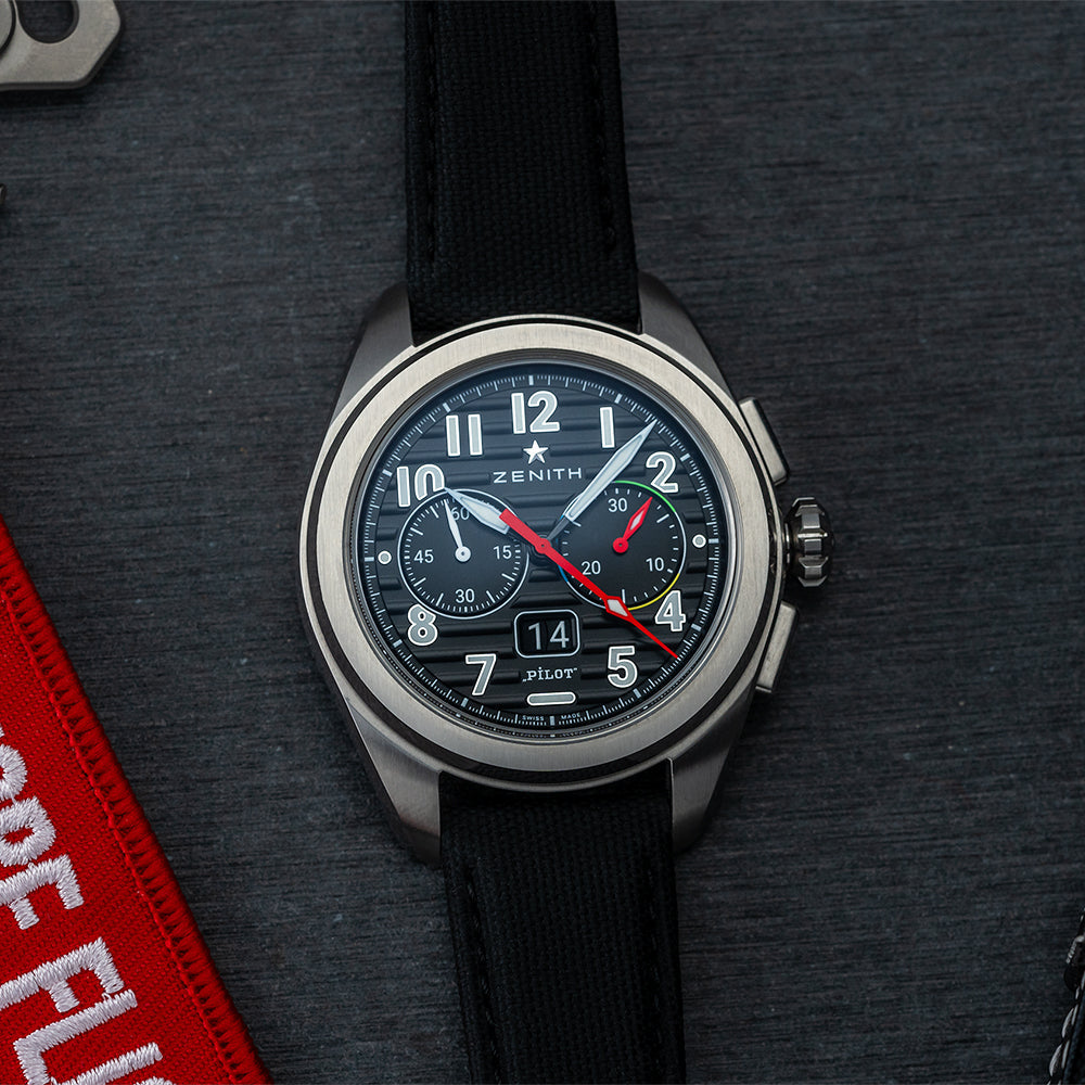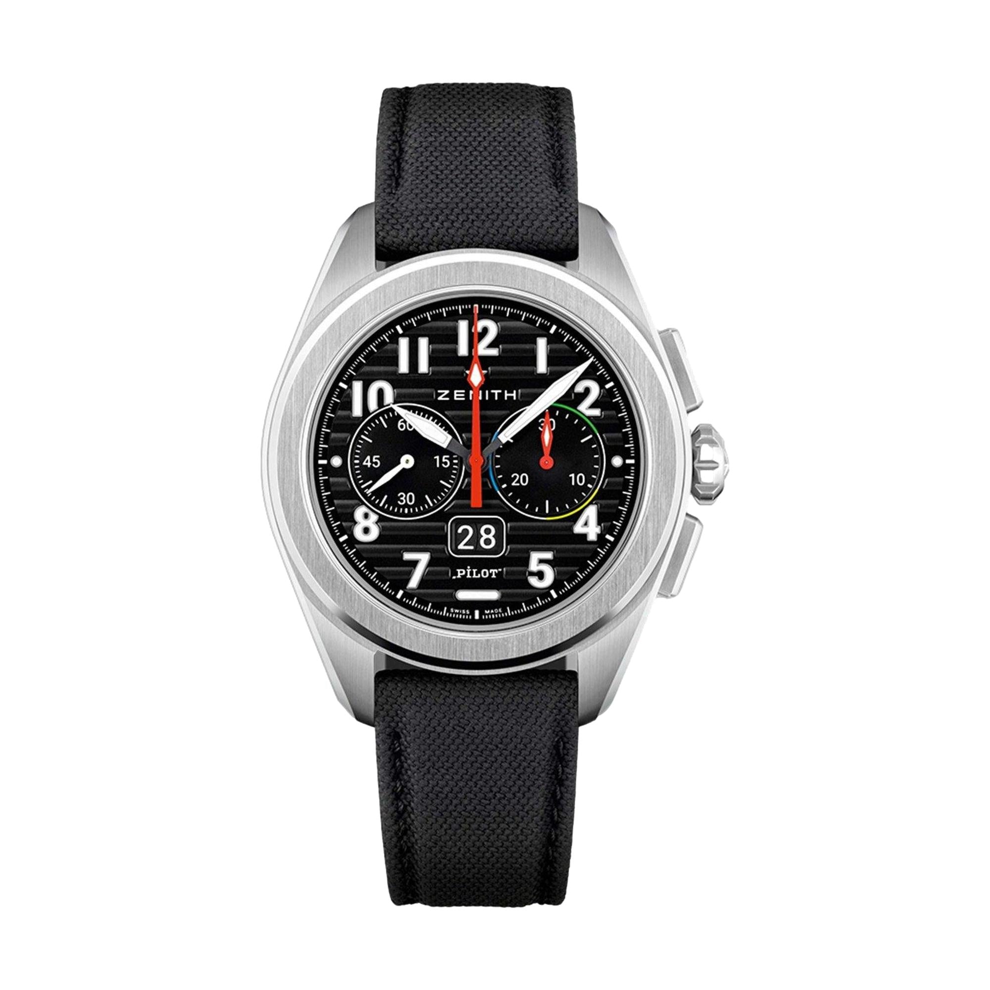 Pilot Central Second and Date 40mm - Black on Codura-Effect Rubber Strap and Extra Leather Strap